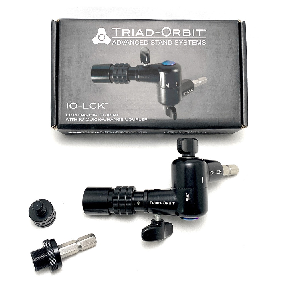 TRIAD-ORBITはコンポーネントどうしをつなげるジョイントを豊富にラインナップしています。IO-LCKは角度調整部に歯車のようなギザのついたハースカップリングを採用し、がっちりと強力に固定します。スピーカー用(IO-SPKR)、ディスプレイ用(IO-VM)、ユーティリティデスク(IO-DESK)などTRIAD-ORBITの多様なアタッチメントに対応しており、重量のあるデバイスの設置時に組み合わせて使用するジョイントとしておすすめです。