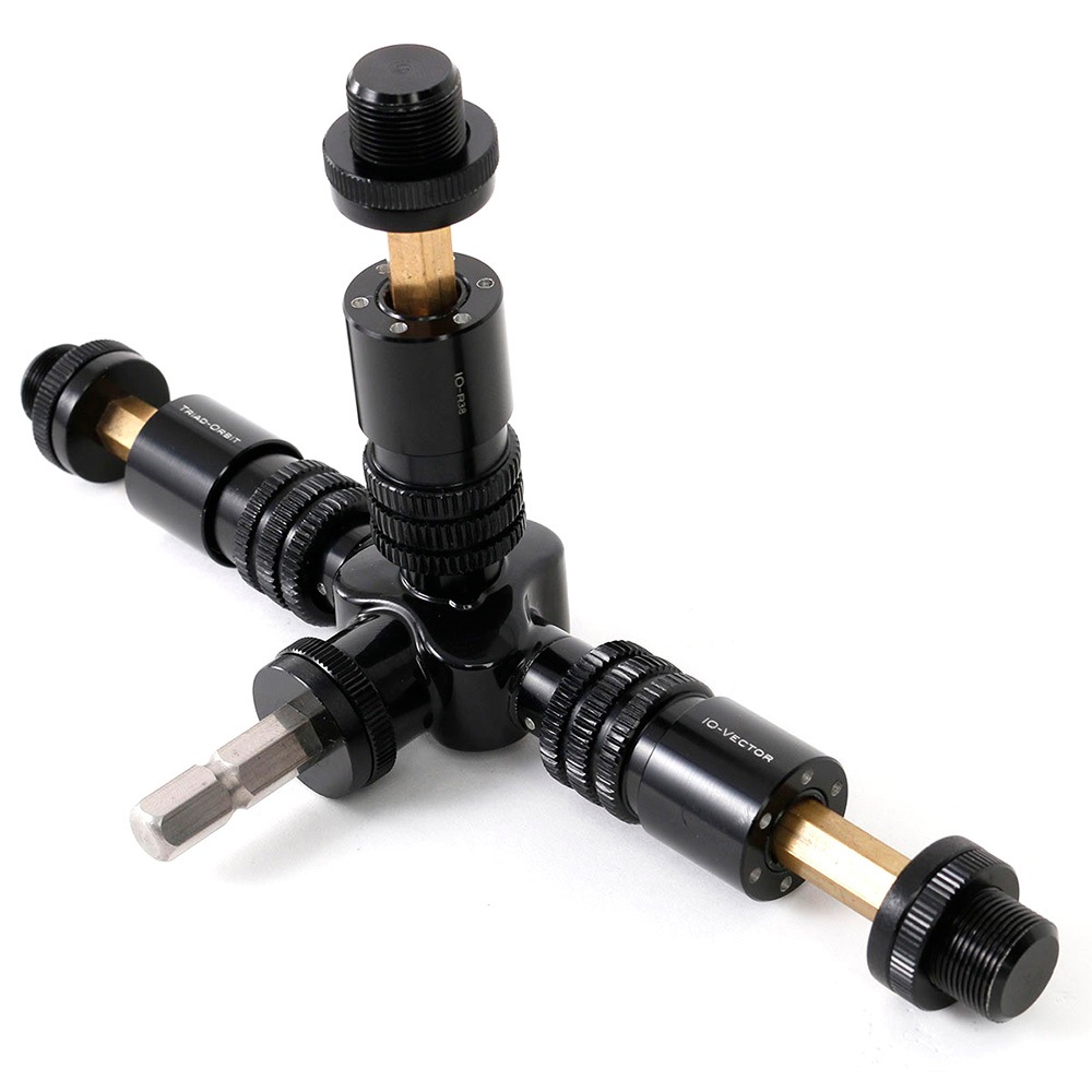 左右にはあらかじめIO Quick-Change Couplerが装備されており、付属のIO-H2(3/4インチネジ)によりSHURE規格のマイクホルダ―を取りつけられます。もちろん瞬時の着脱が可能。付属のIO-R38は3/8インチネジを持つIO Quick-Change Coupler。これを取り付ければ3方向にデバイスを取り付けられます。正面、もしくは上方に設置可能です。