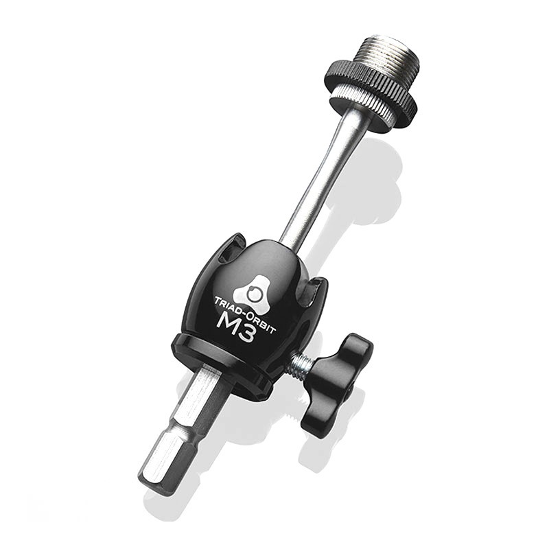 マイクのセッティングを頻繁に行うライブ/レコーディングエンジニアの方におすすめのスタンドアダプターです。最大の特長は、ボールスイベル機構による自由な角度調整です。面で動くのとは異なり回転動作するため、セッティング後の微調整がとても楽になります。特にマイキングがシビアなアコースティック楽器のレコーディングには今や必需品といえるでしょう。シャフトの短いM2もラインナップ。取り付けるデバイスにより選ぶことができます。TRIAD-ORBITスタンドを使用しているミュージシャン、エンジニアの方々、自宅でマイク録音を行う方にもぜひお試しいただきたい便利アイテムです。